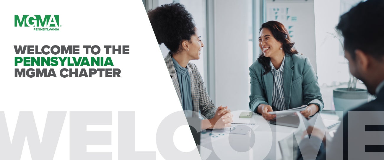 Pennsylvania MGMA is a professional association for those who lead and manage medical practices across Pennsylvania . Our diverse membership includes physicians, practice managers, human resources professionals, operations leaders, finance and billing specialists, and legal advisors, who advocate for medical groups across the full spectrum of size and structure. With a steadily growing membership base, Pennsylvania MGMA offers education, networking opportunities, and a unified voice for healthcare management professionals throughout the state.